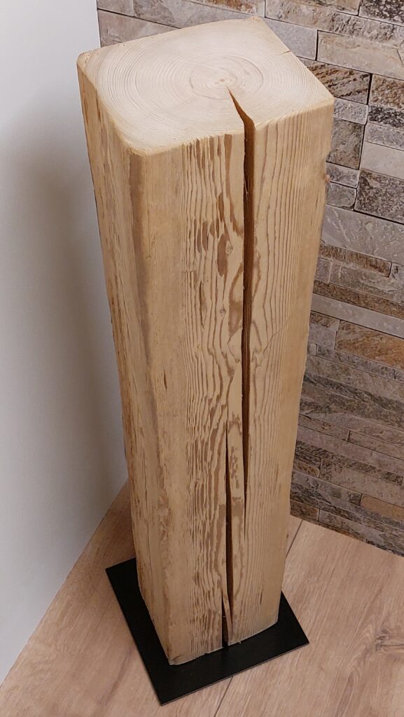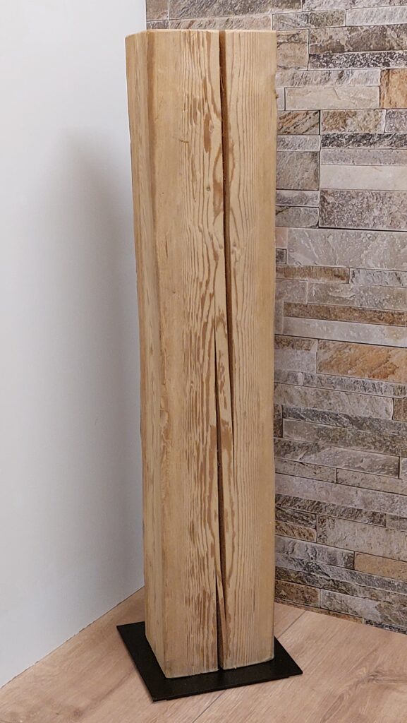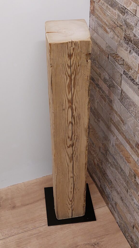 Altholzsäule gehobelt, 100×14.5×13.5cm, inkl. Metallsockel, Fr. 110.-
