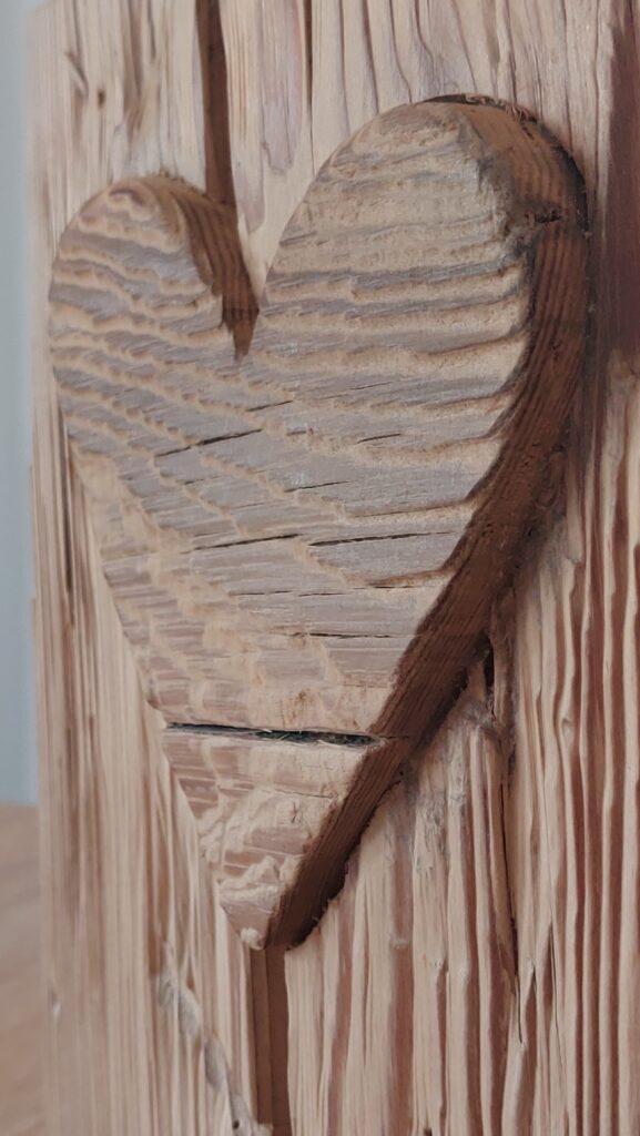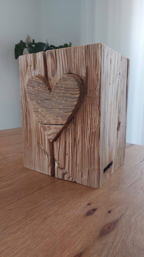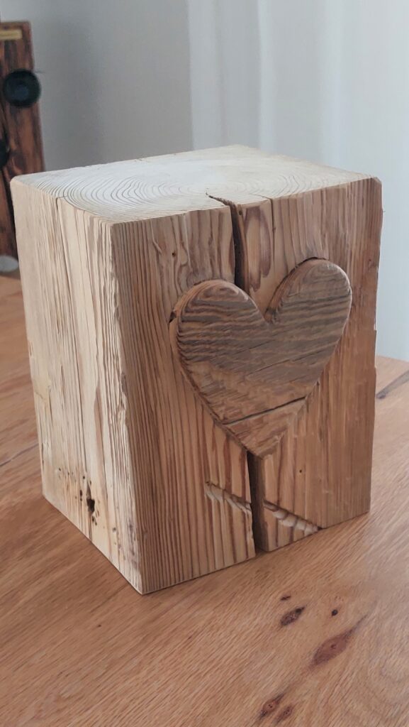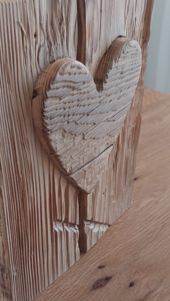 Wollen Sie einem geliebten Menschen ein Herz schenken? Diese Altholzsäule ist ein Hingucker, wobei das aus einem Altholzbrett hergestellte und im Balken eingepasste Herz diese Accessoires einzigartig macht.