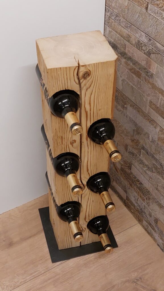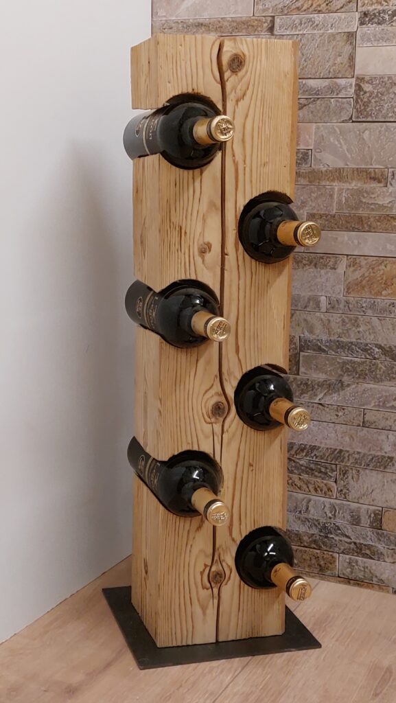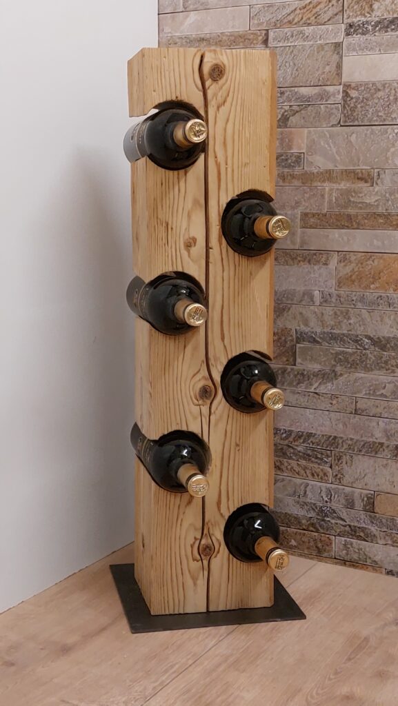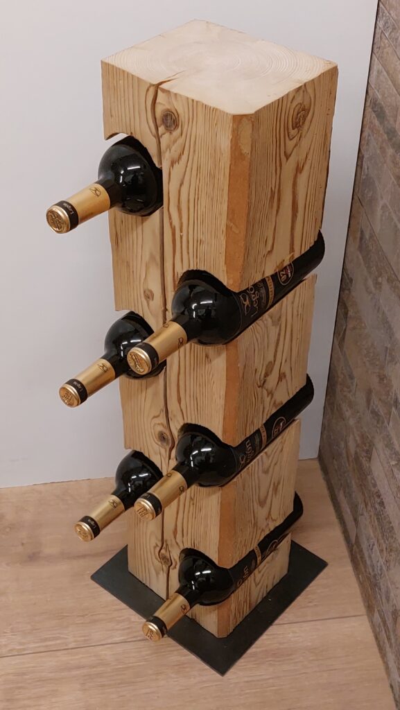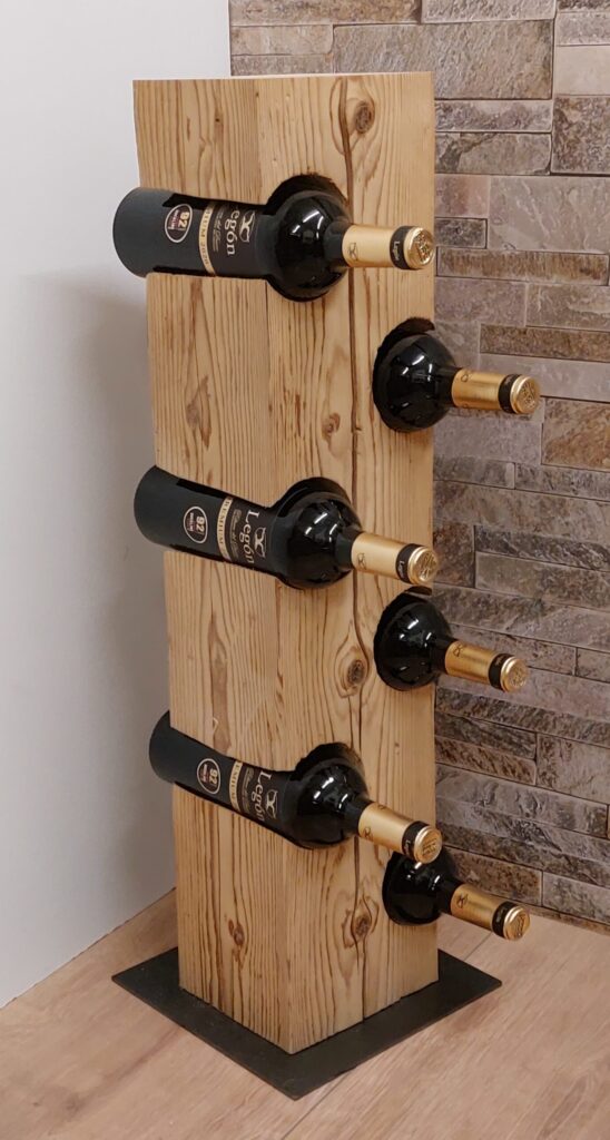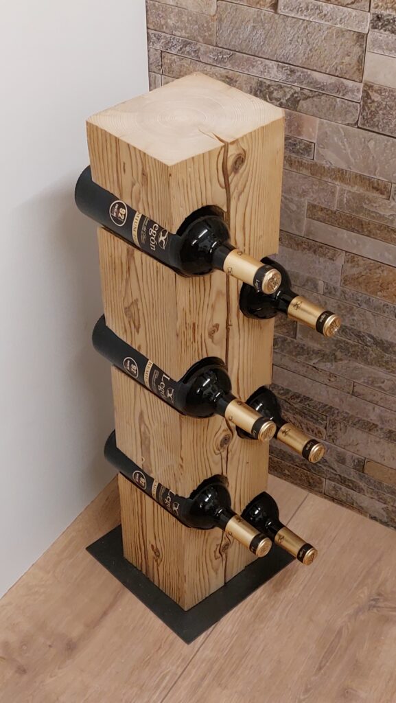 Weinständer aus einem Altholzbalken