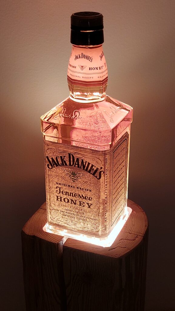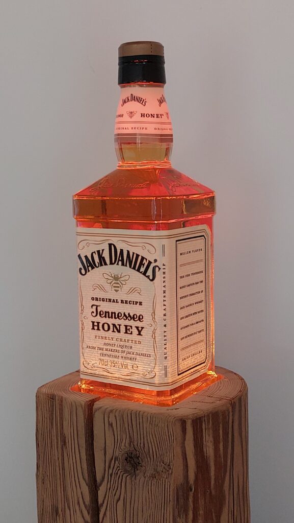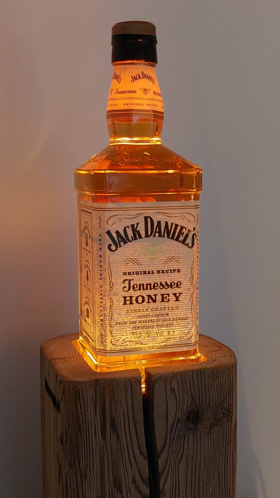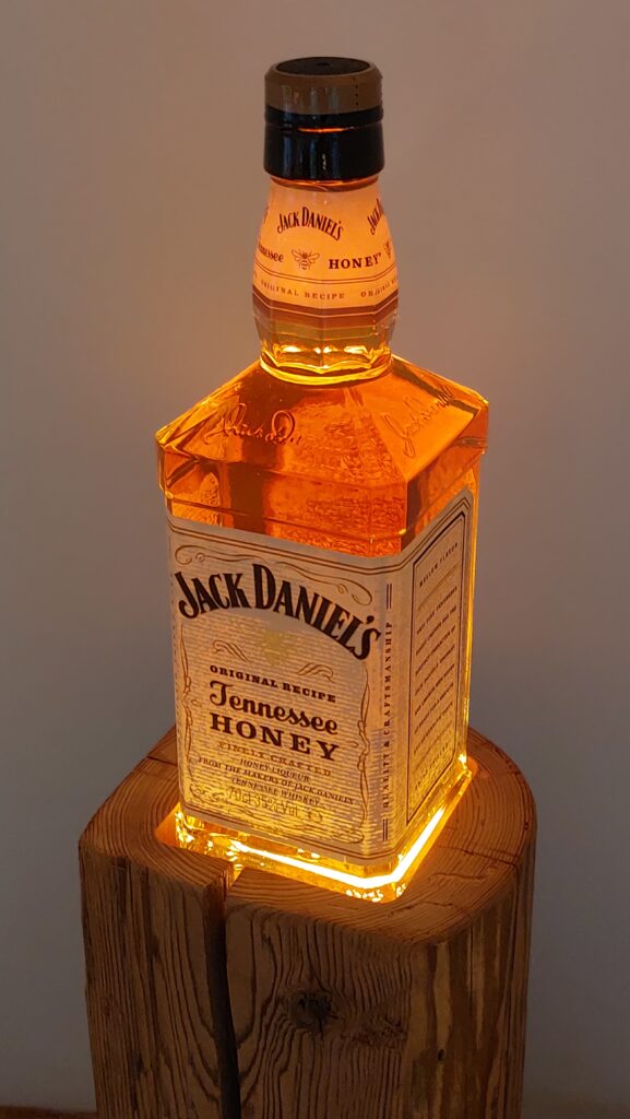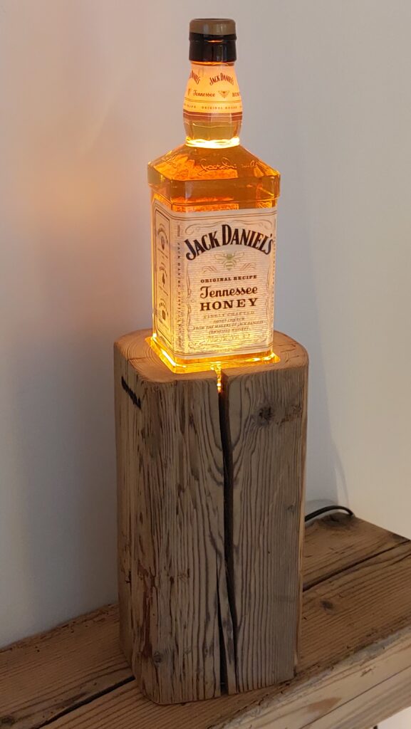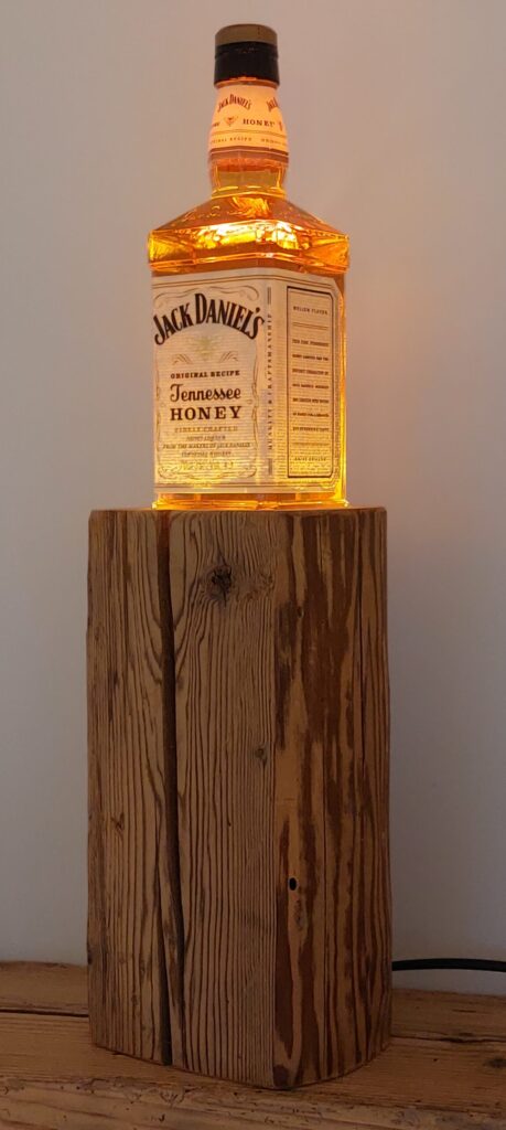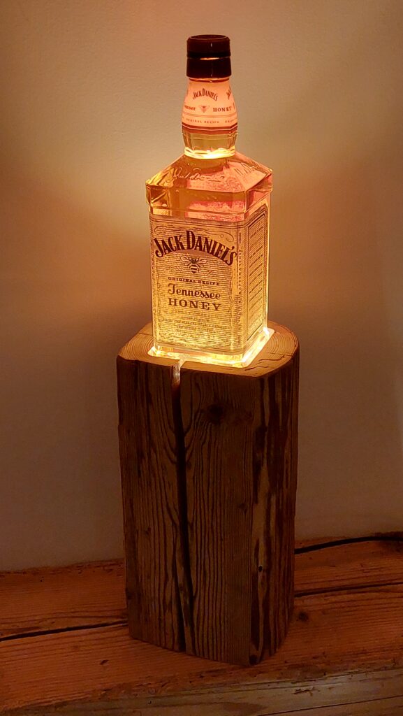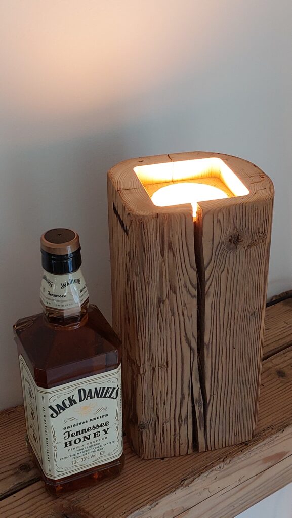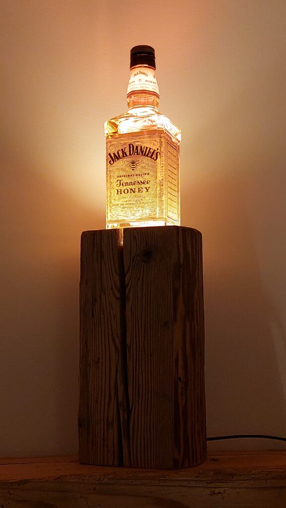Whisky-Lampe Whiskyglow mit einem Altholzsockel