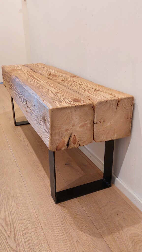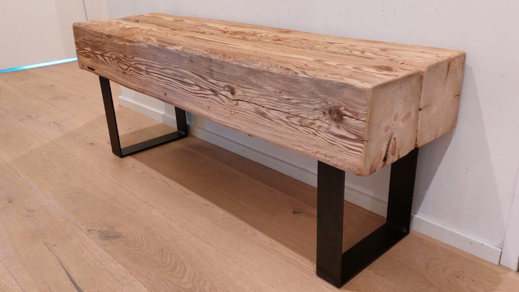 Sitzbank aus einem massiven Altholzbalken