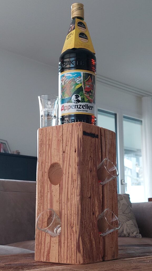 Appenzeller Altholzsäule für 12 Gläser